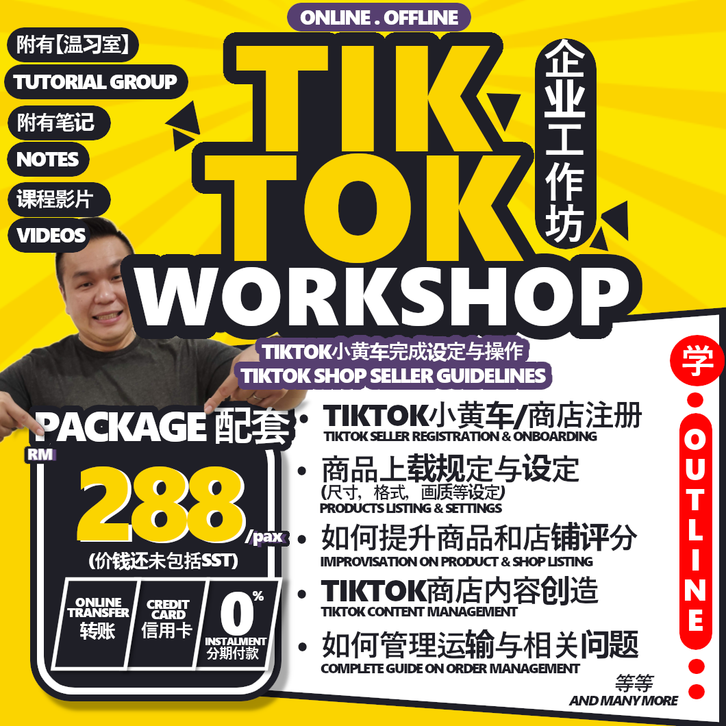 此工作坊的目的是协助所有想要在TikTok挂小黄车,买卖的商家。此工作坊的目的是引导商家如何正确的把产品挂上小黄车防止账号/产品被冻结。总所周知, TikTok的policy是越来越严格。所以,在这里我们会一起探讨TikTok最新的销售条列, 包括⤵