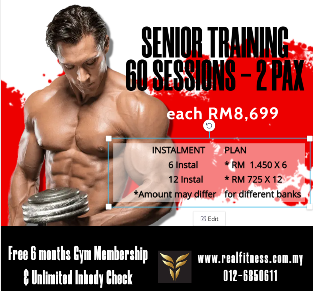 Senior Training 60 Sessions – 2 pax, Free 6 Mths Gym membership, Unlimited Inbody Check